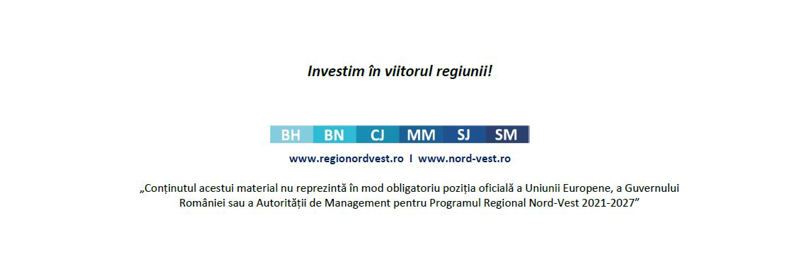 Contractul de finanțare nr.55/21.06.2024 a fost încheiat cu Agenția de Dezvoltare Regională Nord-Vest, în calitate de autoritate de management pentru Programul Regional Nord-Vest 2021-2027.
